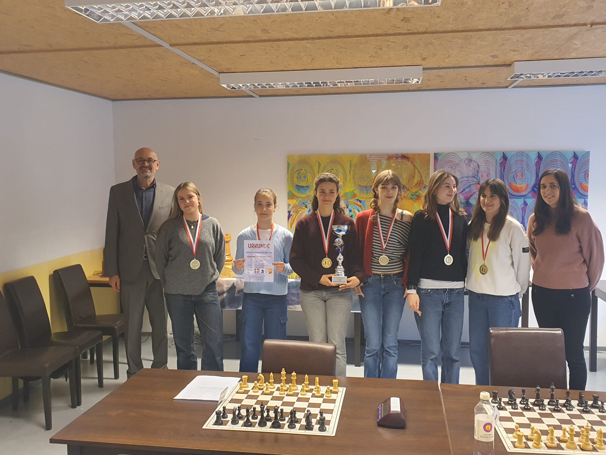 Alle Schülerliga-Ergebnisse auf chess-results! <<Unterstufe V1>> <<Unterstufe V2>> Vorrunde 2 am 11.12.2025: Die Franklinstraße A kann sich einen halben Punkt vor der Kundmanngasse A an die Tabellenspitze setzen. Auf Rang 3 folgt die Wenzgasse A mit 19½ Punkten, und letzter Aufsteiger auf Rang 4 ist die MS Roda-Roda-Gasse mit 18 Zählern. Auf Rang 5 landet das Laaerberg-Gymnasium mit ebenfalls 18 Punkten, doch in der Zweitwertung bleibt die Mannschaft hinter Roda-Roda und hat den Aufstieg denkbar unglücklich verpasst. Ähnliches gilt auch für das Lycee auf Rang 6, das immerhin die stärkste Spielerin stellte: Violetta Hyassat gewinnt als einzige Spielerin alle 7 Partien, auch kein Bursche konnte da mithalten. Allerdings fehlen im Team die nötigen Gesamtpunkte für den Aufstieg. |